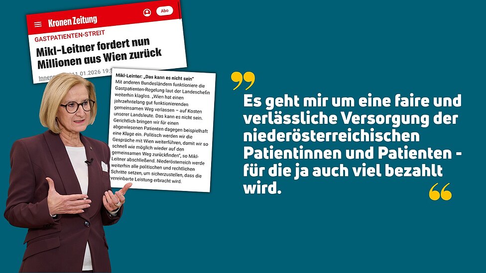 LH Mikl-Leitner zu Gastpatienten: „Wien muss Leistung erbringen – oder das Geld zurückzahlen“