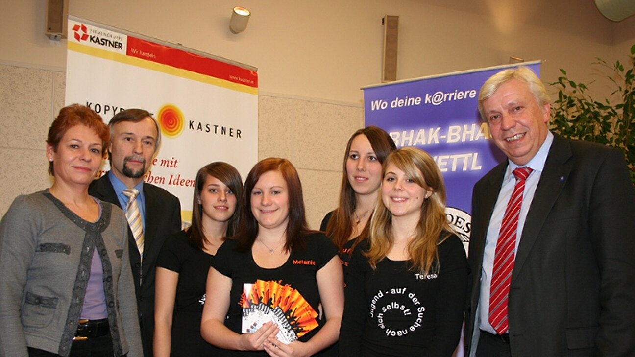 Schüler der Maturaklasse der BHAK präsentieren ihr Projekt "Jungend auf der Suche nach sich selbst" anhand einer umfangreichen Fragebogenaktion mit Jugendlichen. Darauf aufbauend wird mit Vertretern von Schülern, Eltern, Schulpsychologen und Landesrat Johann Heuras im Saal der Wirtschaftskammer eine Podiumsdiskussion geführt.