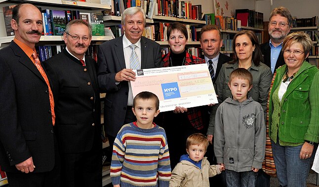 Landesrat Johann Heuras überreicht Scheck für Bibliothek
