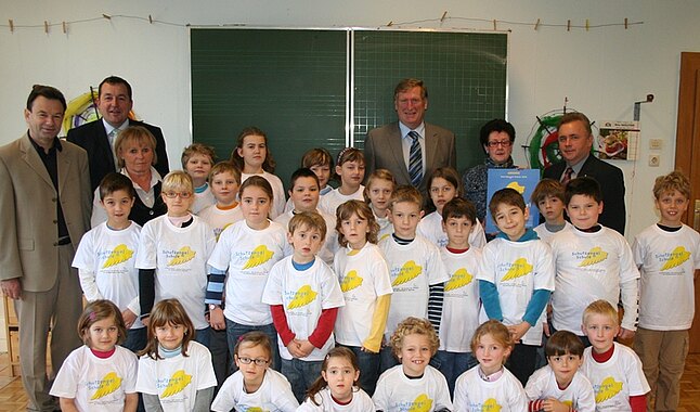 LAbg. Franz Mold überreicht den Schülern der Volksschule Friedersbach den Gewinn zur…